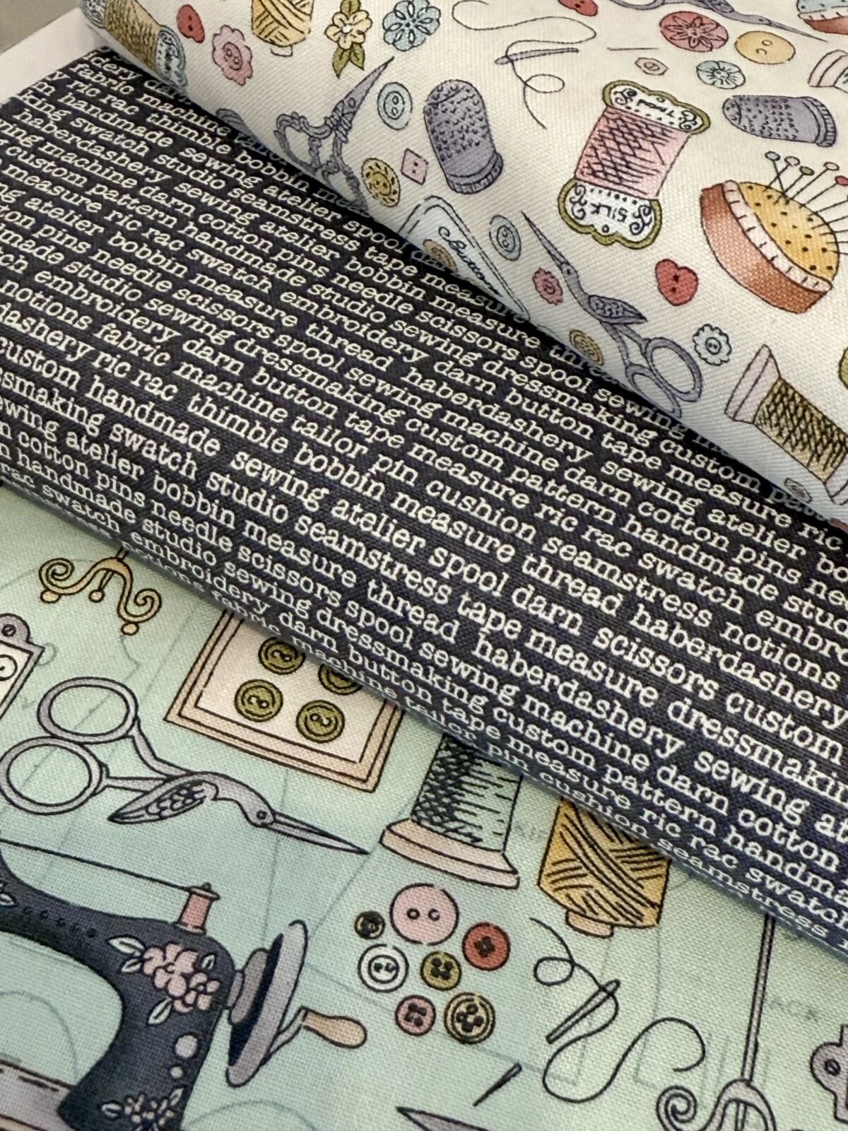 Celebrate the timeless craft of sewing with Atelier. Featuring beautiful traditional haberdashery and sewing machines, this collection is designed in a soft, muted colour palette that coordinates effortlessly.