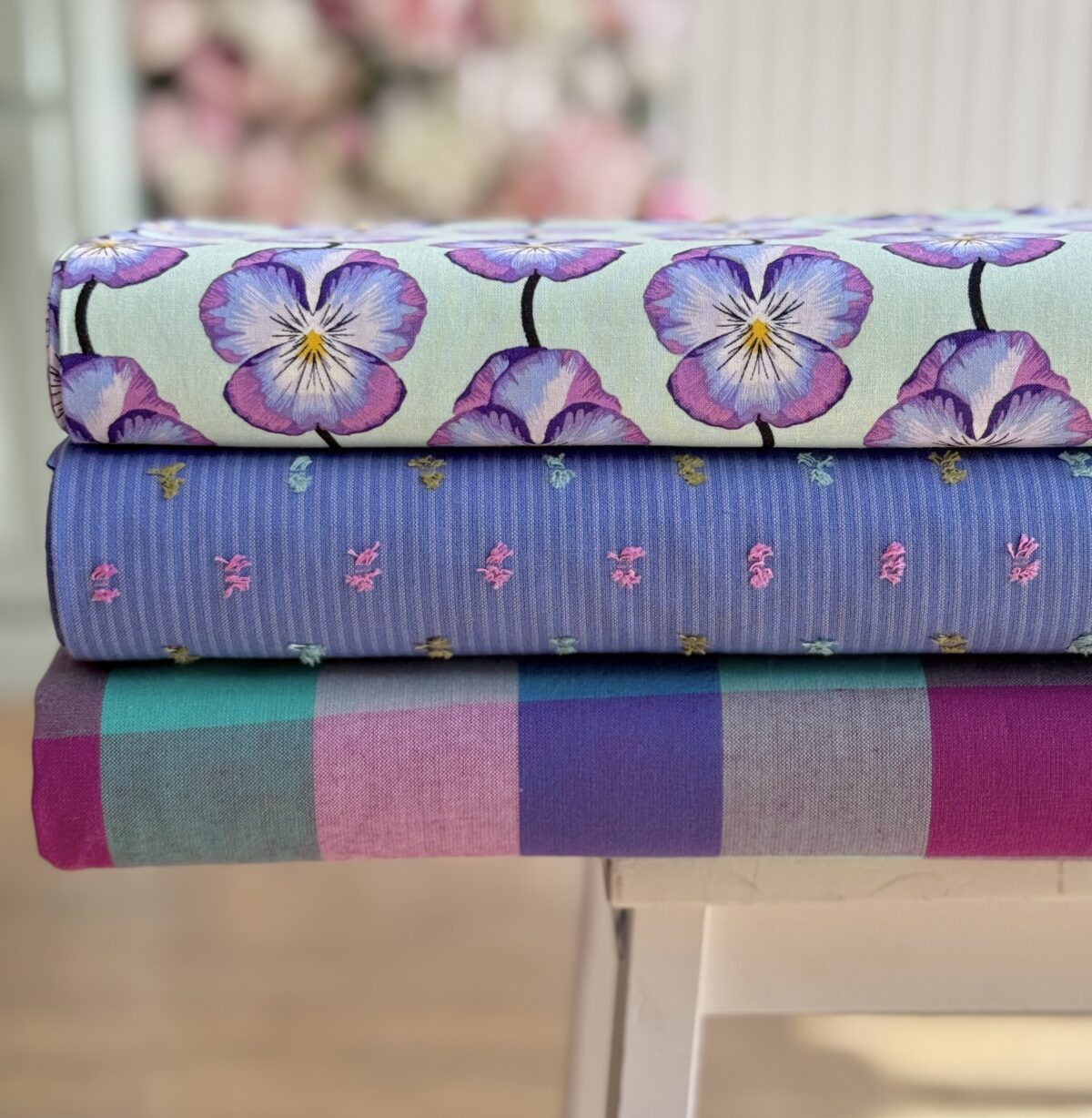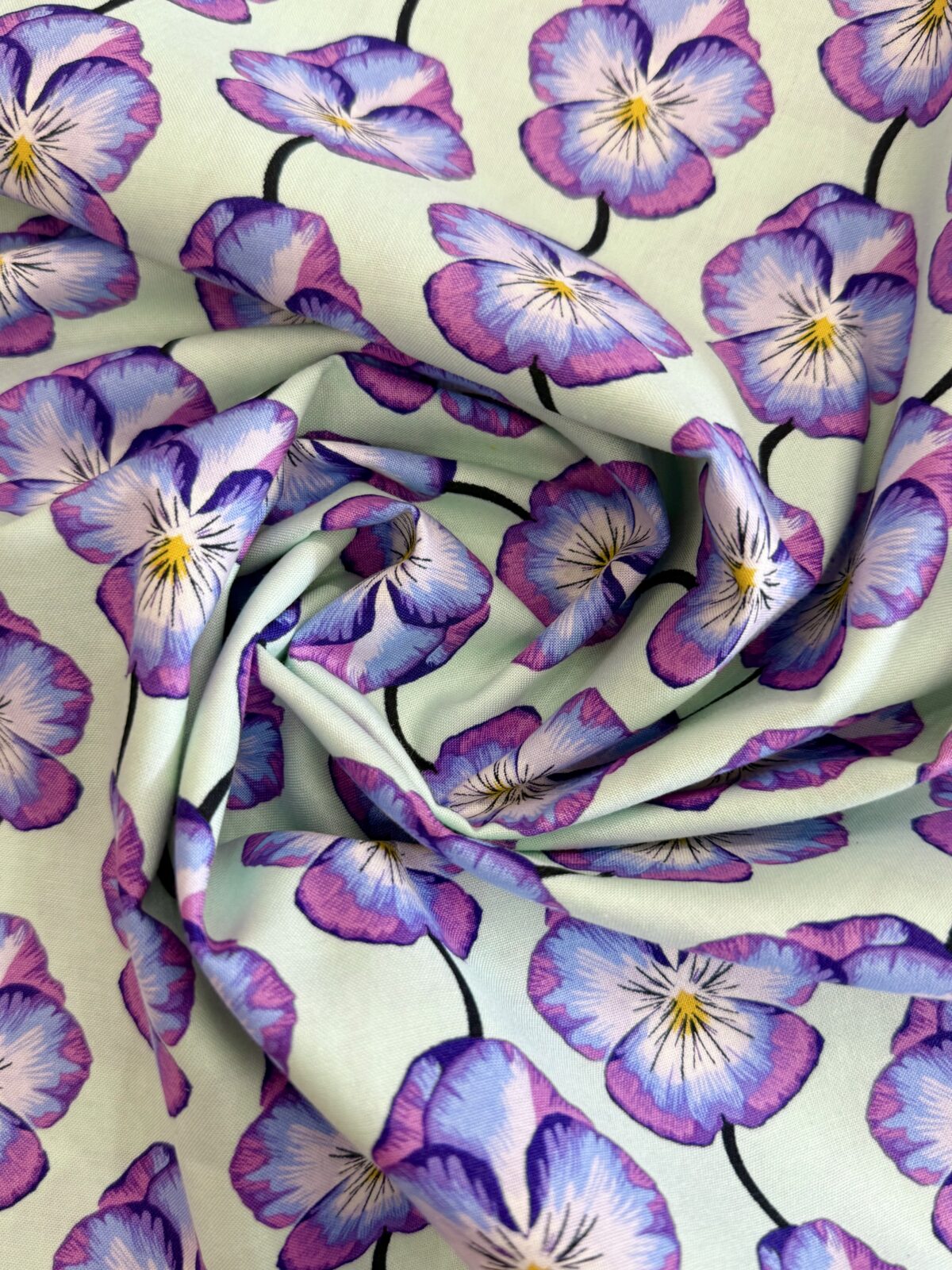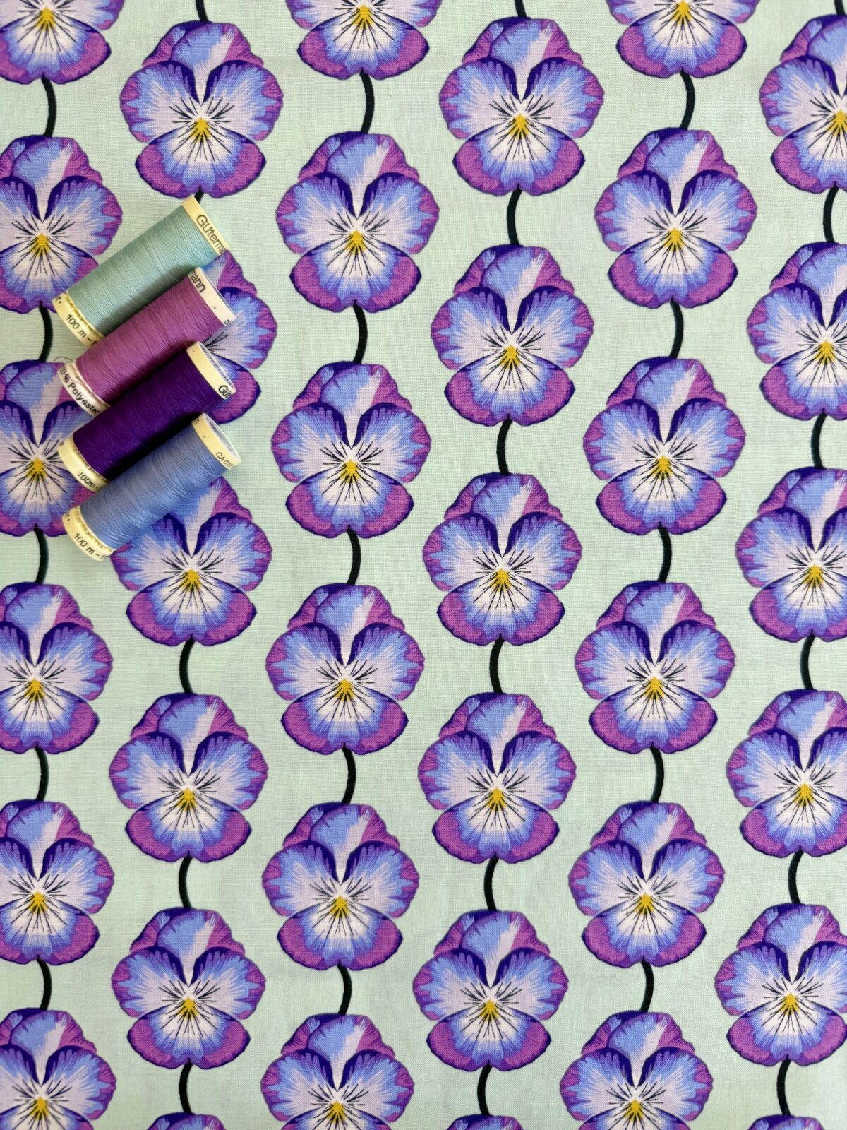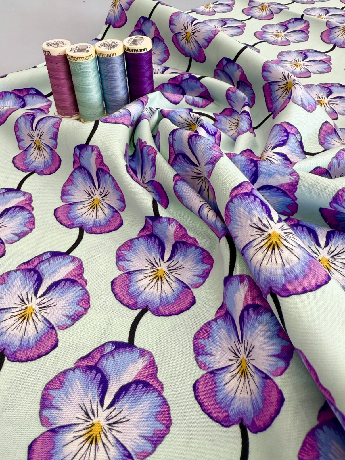 From Anna Maria Horner’s (also known as Parry) much-loved Iconic collection, this Pansy print is a true celebration of garden beauty. Inspired by her own garden, Anna Maria features bold, portrait-style florals capturing every petal and hue with painterly detail, making them perfect for statement quilting, striking dressmaking, or adding a pop of colour to your creative projects. Their rhythmic repeat makes them ideal for fussy cutting or letting the design shine in larger panels. A modern classic for makers who love florals with personality.