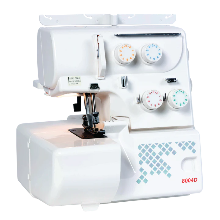 The Janome 8004D overlocker provides professional results at an extraordinary value. This 3 and 4 thread convertible overlockers cuts, overlocks and finishes seams in one quick and easy motion. The external colour coded tension dials allow for easy threading and the rolled hem changeover device makes it easy to convert to a rolled hem. You’ll love the difference the Janome 8004D will make in your sewing!