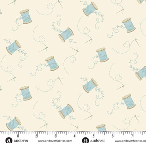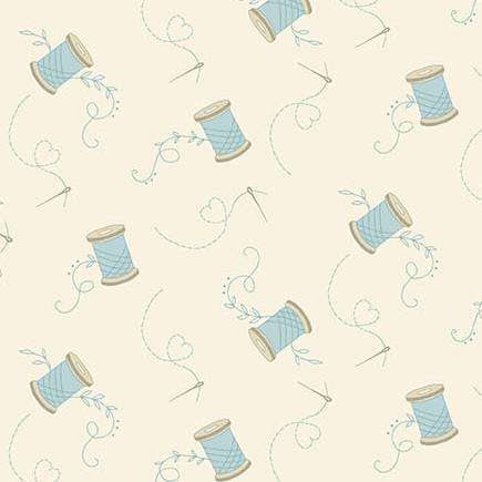Pastel blues and creams with delightful floral and sewing inspired prints.